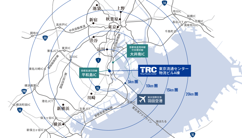 緊急配送や国際物流の拠点として都心部・羽田空港へ最適なアクセスを誇ります。